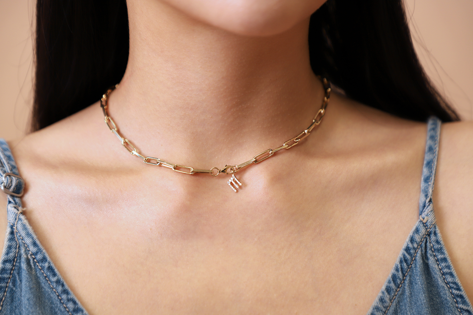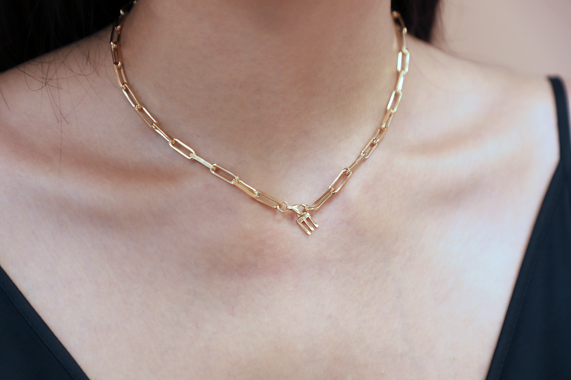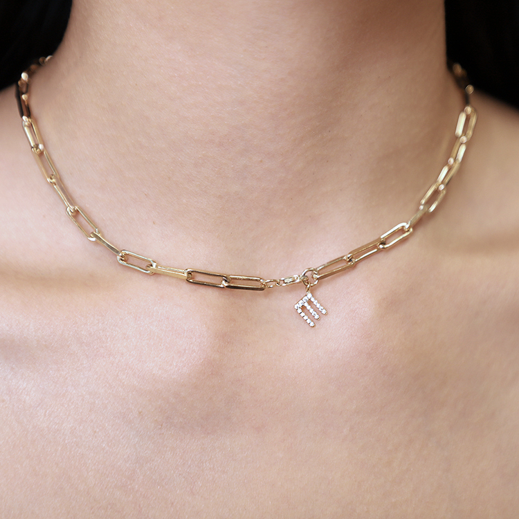 테시의 시그니쳐 디자인인 스틱형 한글팬던트 목걸이는, 팬던트 상단에 체인 통과를 위한 구멍이 뚫려져 있는 디자인입니다.